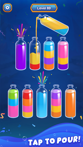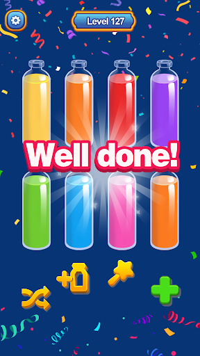 : Jugabilidad innovadora: Vierte y mezcla líquidos de colores para completar vibrantes rompecabezas.