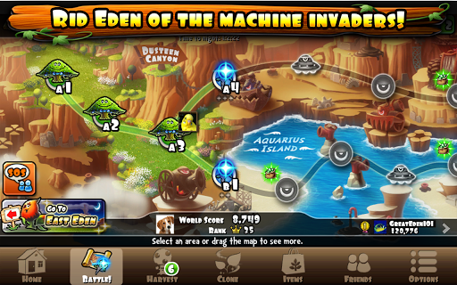 Eden to Green es una mezcla adictiva de estrategia casual y batallas rápidas con plantas emblemáticas frente a máquinas de cómic. ¡Crea un ejército a partir de una amplia variedad de plantas para luchar contra las máquinas alienígenas y restaurar las vistas una vez hermosas! Aumenta la 'Euphoria' mediante la plantación y una vez en la ofensiva, planta más y mejores plantas para lanzar un contraataque total. ¡Marcha hasta que se gane la guerra contra las máquinas!