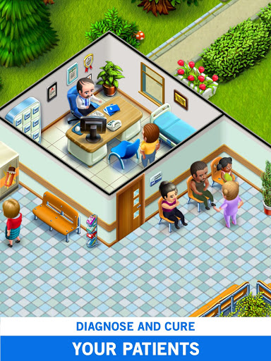 Construye y administra tu propio hospital. Construye consultorios médicos, salas de diagnóstico, el centro de tratamiento y laboratorios. ¡Amplía y mejora tu hospital y compártelo con amigos!