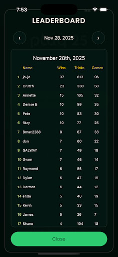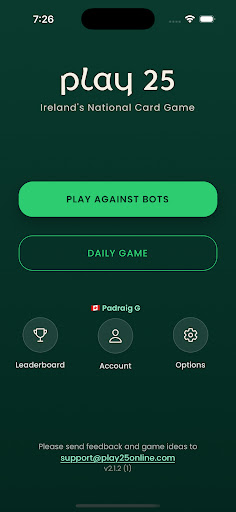 Desde las acogedoras mesas de cocina y los pubs de Irlanda hasta la App Store, Play 25 está aquí para poner el juego tradicional a tu alcance. Juega en línea con amigos y familiares dondequiera que estén en el mundo, o perfecciona tus habilidades sin conexión contra nuestros bots de 25 personalizados, diseñados para mantenerte alerta.