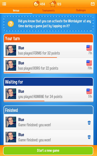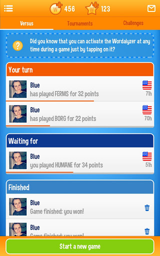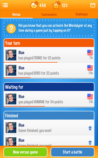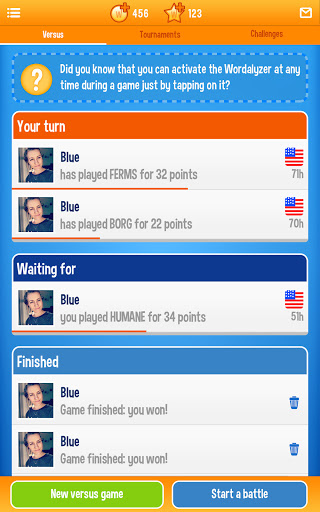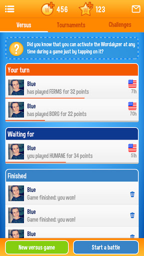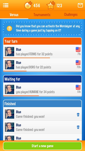 Vas cara a cara contra otros jugadores aleatorios o empiezas a jugar palabras con amigos para vencerlos. No suponga que es mejor que ellos. Este juego es como los viejos juegos de mesa de palabras que se encuentran en su ático. Si fue el campeón anual de ortografía, este juego es el activo perfecto para usted. ¿Te encantan los rompecabezas de palabras? WordOn es un juego de palabras agradablemente adictivo que puedes llevar contigo dondequiera que estés.